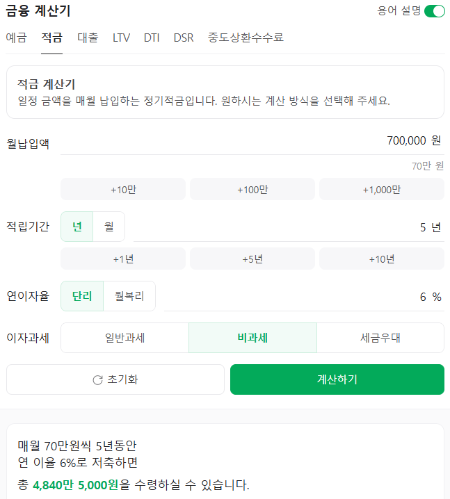 월 납입을 얼마를 하는지 계산해보세요.