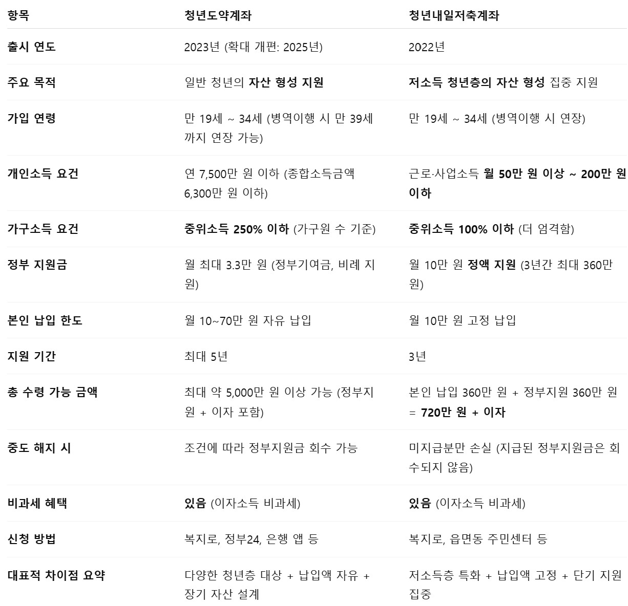 청년도약계좌 청년내일저축계좌 비교 (참고)