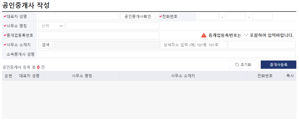 마지막으로 거래했던 공인중개사에 대한 정보를 작성합니다.