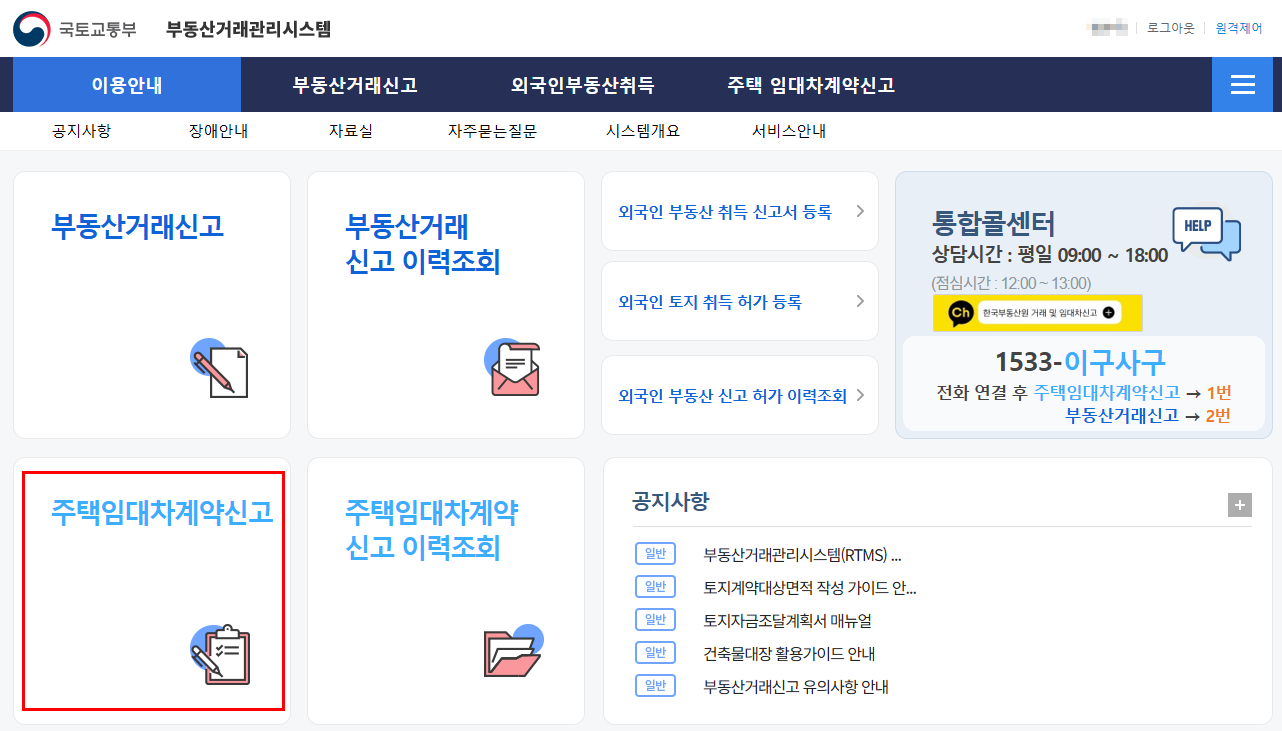 주택임대차계약 신고 절차 (온라인)