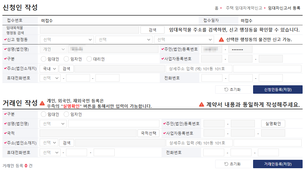 → 원칙은 공동 신고이나, 한 명이 먼저 신고한 뒤 상대방이 확인에 동의하면 처리됩니다. 동의하지 않는 경우 일부 정보 누락이 발생할 수 있으며, 이는 향후 분쟁 시 불리할 수 있습니다.