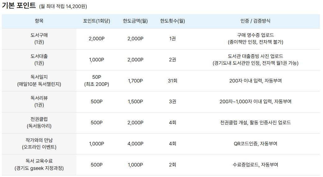 경기도 천권으로 독서포인트