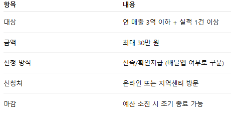 | 📦 지원한도 | 업체당 최대 30만원 |