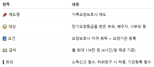 ✔️ 2025년 방문요양 수가 기준 (가족요양)