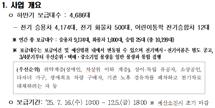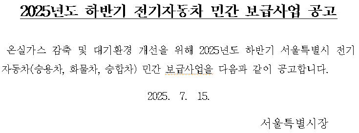 2025년도 하반기 전기자동차 보급사업은 2025.7.15.에 공고문이 올라왔으며,