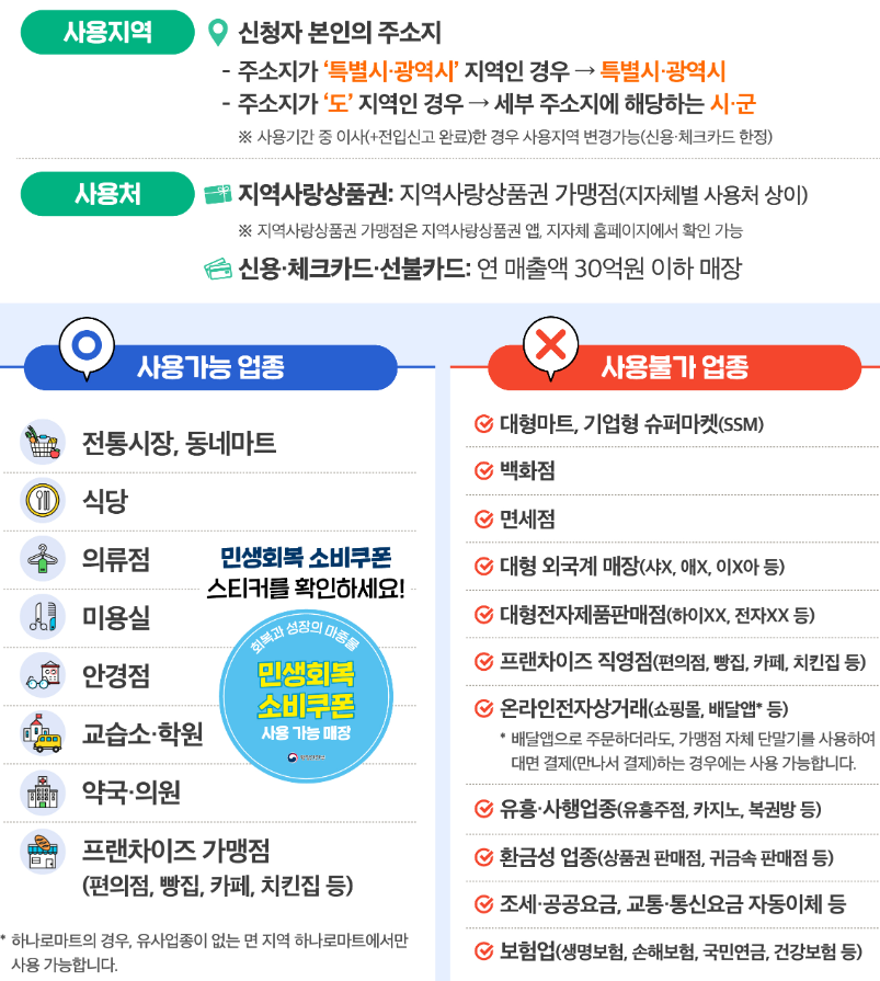 | 구분 | 소비쿠폰 사용 가능 여부 | 비고 |