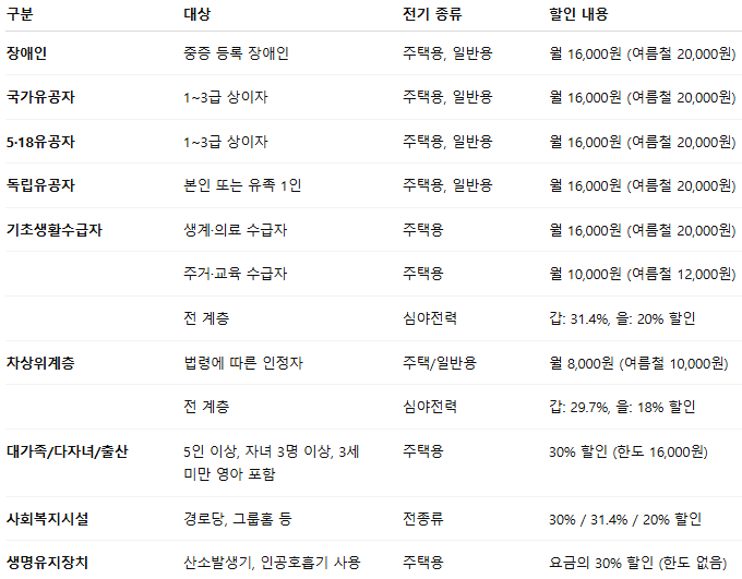 ✅ 전기요금 복지할인 대상자 & 할인 내용 총정리