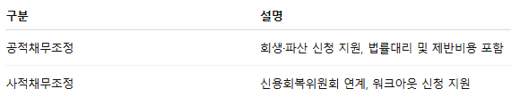 ✂ 채무조정 신청지원: 공적/사적 채무 모두 가능