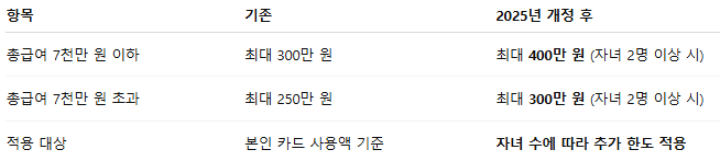 2025년부터는 카드 사용액뿐만 아니라 자녀 수까지 신경 쓰면